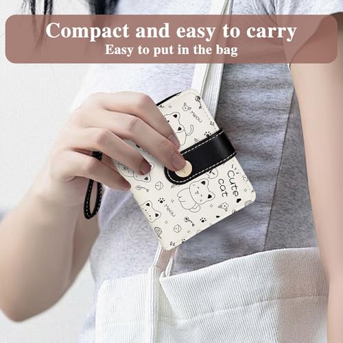 Small Purses for Women, PU Women Wallets with 5 Cards and ID Window Cute Kitten Pattern Ladies Purse(Black) 6