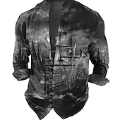 More information about Men's Nautical Vintage Sailboat Shirt Button Up Shirt Long Sleeve Fashion Streetwear Designer Outdoor Casual Daily Summer Spring Fall Stand Collar Print Yellow Red Blue Green Gray