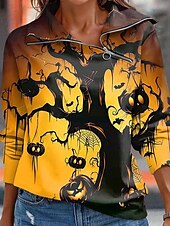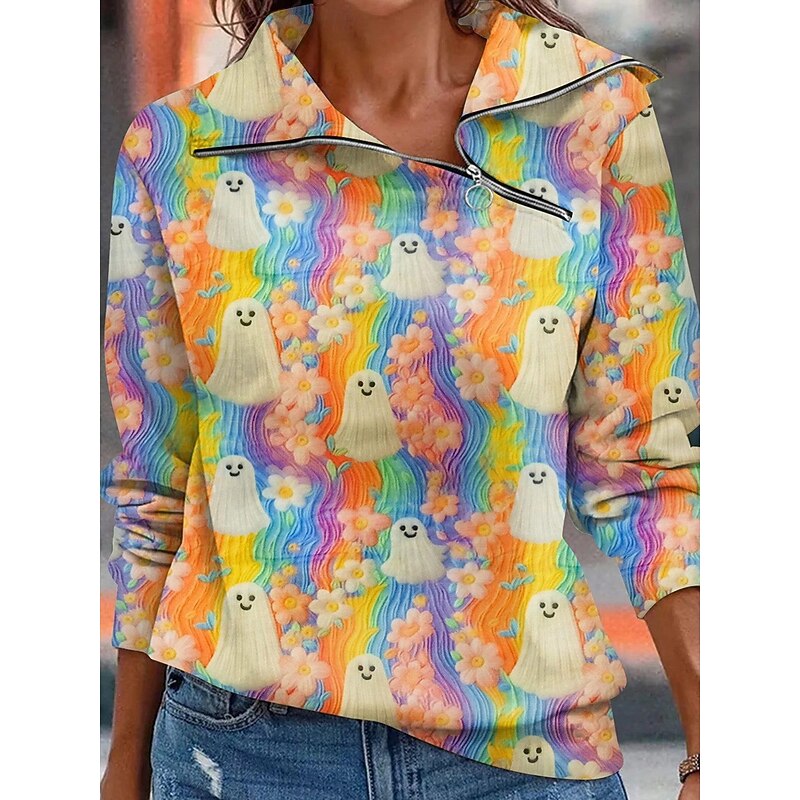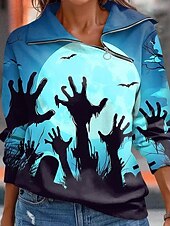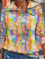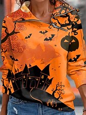 More information about Halloween Women's Sweatshirts Casual Long Sleeve High Neck Regular Tops Dailywear Casual Yellow Blue Orange Dark Blue Beige Fall Winter