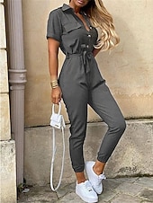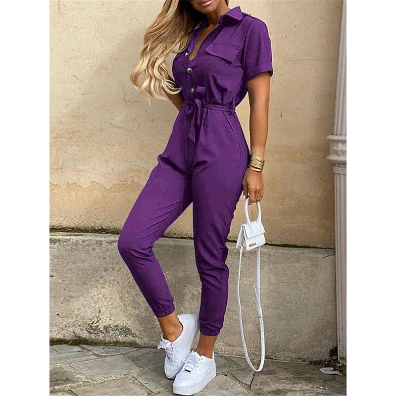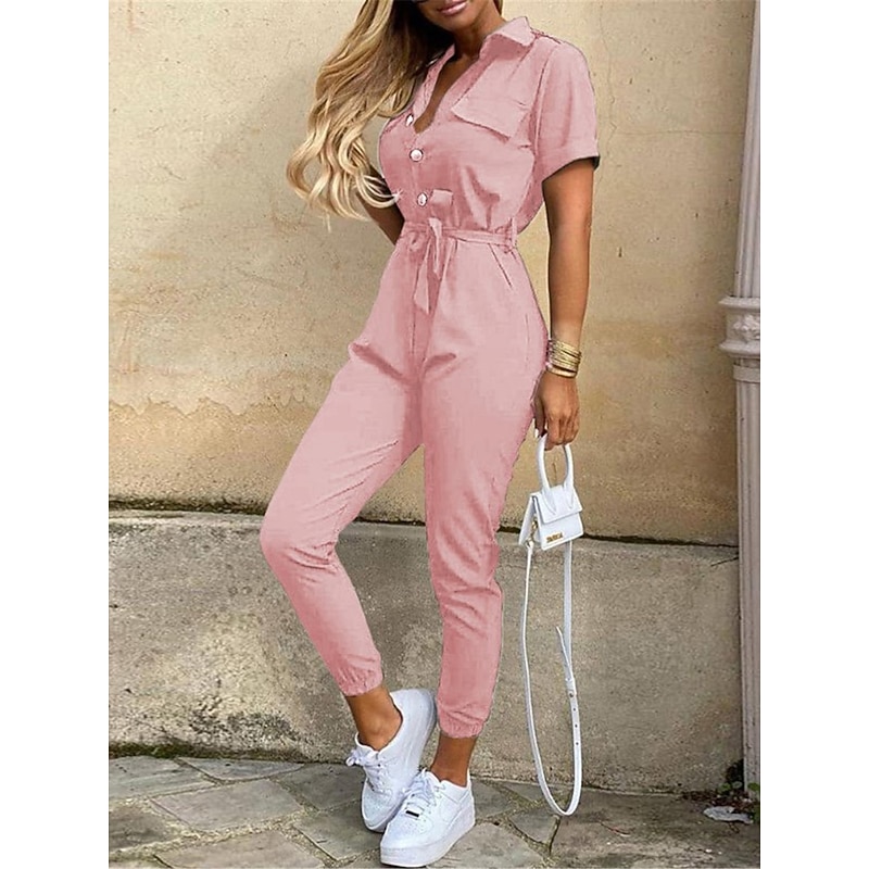 More information about Women's Jumpsuits Casual Summer Button Solid Color Shirt Collar Streetwear Daily Vacation Regular Fit Short Sleeve Pink Wine Navy Blue S M L