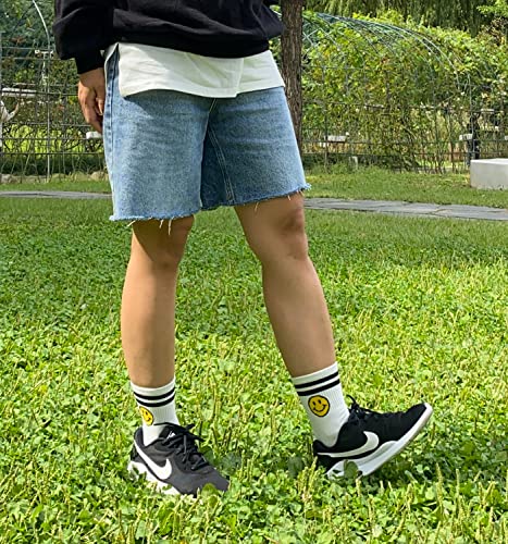 HOT ! Happy Face Fun Design Positive Smile Quarter Socks with Neon Double Stripes for Women 3P Set