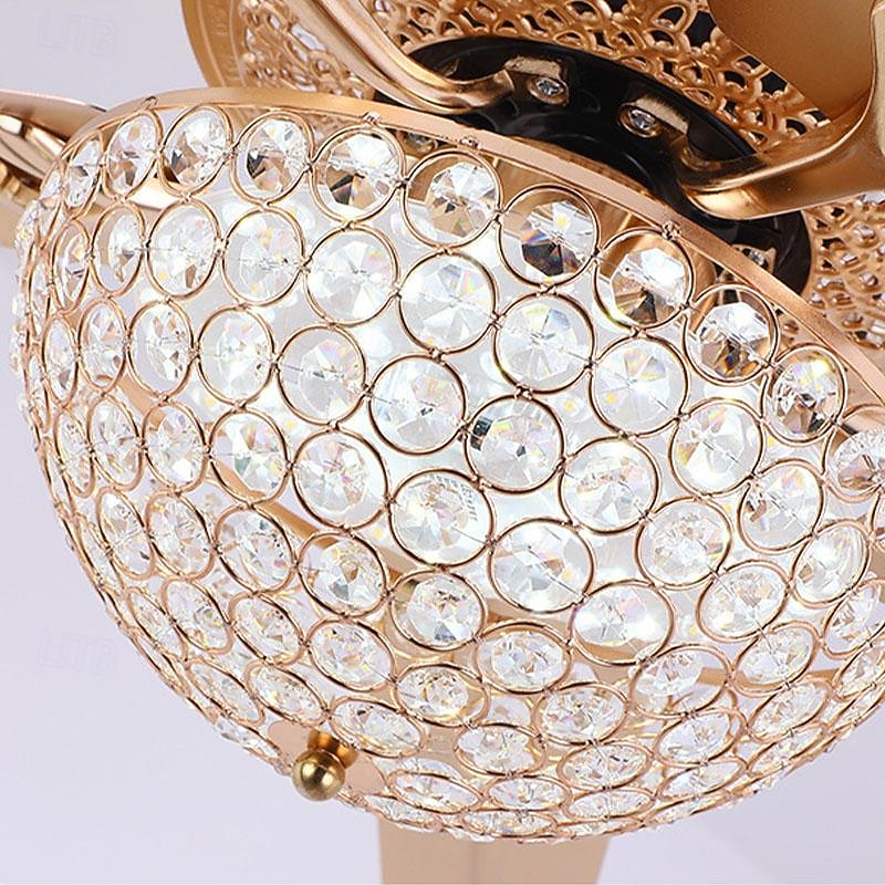 LED Ceiling Fan Light Crystal Gold Luxury Light 3-Color-Light Acrylic Modern Nordic Style Bedroom Dining Room 110-240V 6