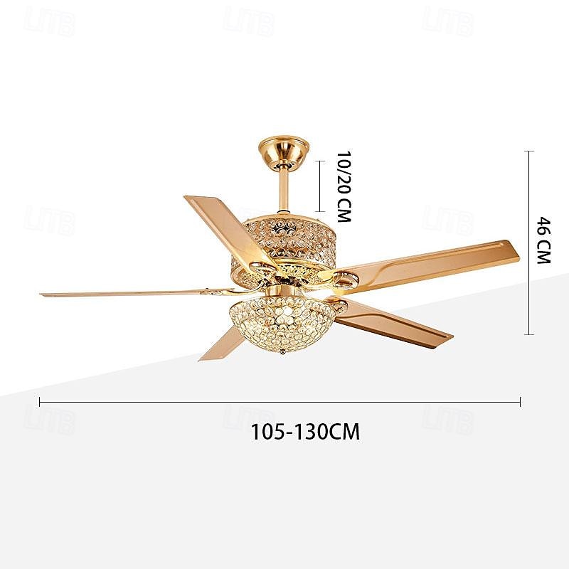LED Ceiling Fan Light Crystal Gold Luxury Light 3-Color-Light Acrylic Modern Nordic Style Bedroom Dining Room 110-240V 10