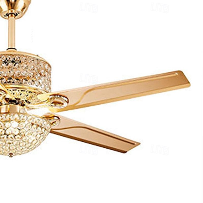 LED Ceiling Fan Light Crystal Gold Luxury Light 3-Color-Light Acrylic Modern Nordic Style Bedroom Dining Room 110-240V 5