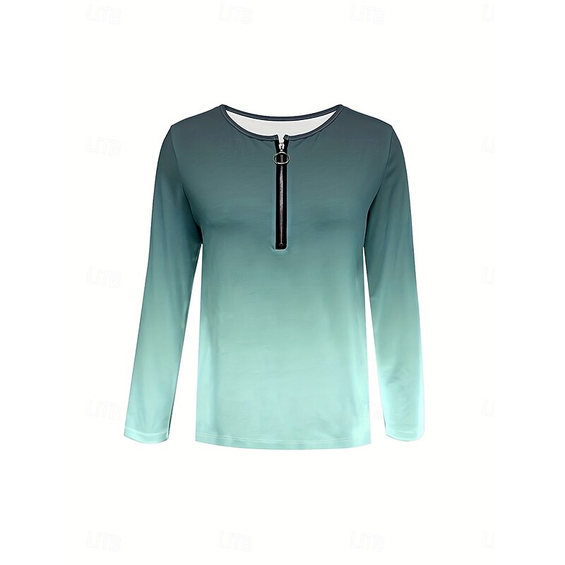 HOT ! Women's T Shirt Graphic Gradient Elegant Vintage Stylish Long Sleeve V Neck Round Neck Notched Neck Regular Tops Daily Weekend Zipper Print Black Light Green Spring Fall Winter