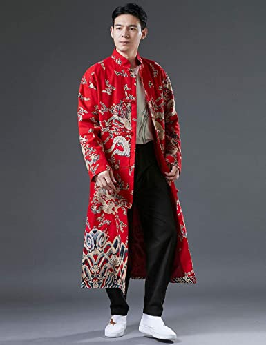 • Features:Long sleeve,Kimono jacket,side pockets,long length style, mandarin collar design coat, frog buttons closure, Chinese style trench coat with dragon pattern printed, slim fit, all designs show man elegant charm.