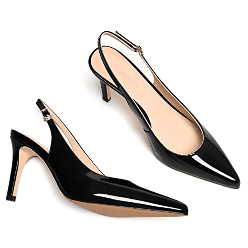 FEMSTEP Womens Pointed Toe Patent Leather Slingback Stiletto High Heel Pumps Shoes 3.3 Inch 1