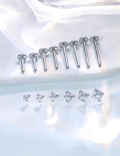 • MEASUREMENTS--Gauge Size: 16G (1.2mm); Straight Bar Length: 6/8/10/12mm, The Different Sizes Made It Easy to Find the Right One for You; CZ Top Size: 2/2.5/3/3.5/4/4.5mm. Color: Silver-tone.