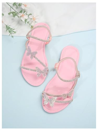 GORGLITTER Women's Sparkly Rhinestone Flat Sandals Glitter Bling Butterfly Strappy Open Toe Slides 5