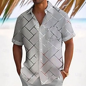 More information about Men's Geometric Grid / Plaid Shirt Casual Shirt Button Up Shirt Short Sleeve Fashion Casual Vacation Holiday Streetwear Summer Spring Turndown 3D Print Collared Shirts Front One Pocket Gray