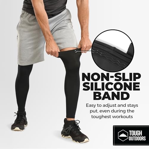 HOT ! Tough Outdoors Compression Leg Sleeves - Full Leg Compression Sleeve for Men & Women, UV Leg Sleeves - Cycling Leg Warmers