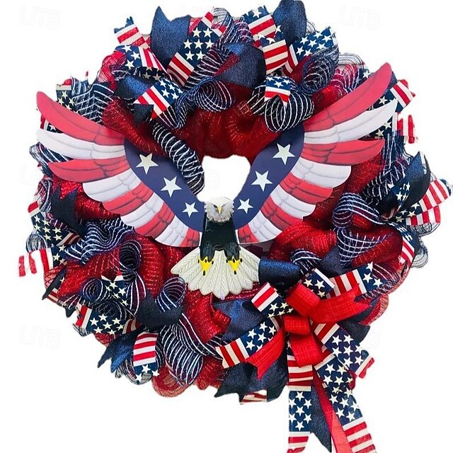 HOT ! Patriotic Wreath American Eagle Wreath Independence Day Decoration Red White Blue Wreaths 4th of July Wreaths Flag and Eagle Wreath - Patriotic Home Front Door Decoration