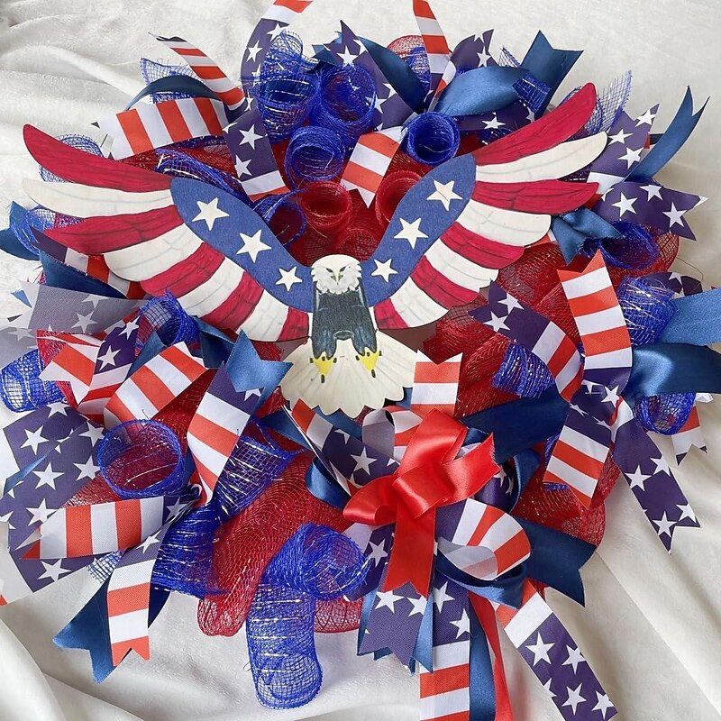 Highlights - Celebrate 4th of July with our essential patriotic wreath for indoor and outdoor decoration - Versatile design perfect for memorial day, parties, weddings, or as a thoughtful gift - High-quality materials ensure durability and vibrancy, suitable for indoor and outdoor display - Makes a beautiful welcome sign and a great way to show patriotism year-round - Handcrafted with care, each wreath is unique and comes with excellent customer service