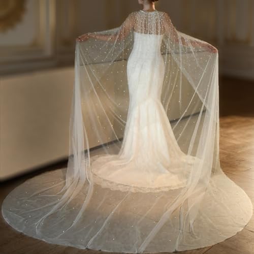 Wedding Women's Pearl Embroidered Shrug Shawl Wrap Bolero Tulle Wedding Jacket for Bride 6