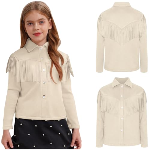 HOT ! renvena Cowboy Cowgirl Fringe Shirt for Kids Western Long Sleeve Tassel Shirt Retro Casual Blouse Top