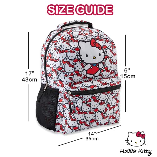 HOT ! Fast Forward Hello Kitty Allover School Backpack - Hello Kitty, My Melody, Kuromi, Keroppi - Officially Licensed School Bookbag (White)
