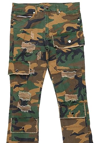 HOT ! Men's Glenn Camo Green Stacked Flare Jean in