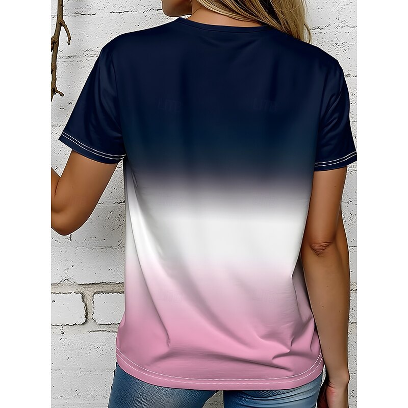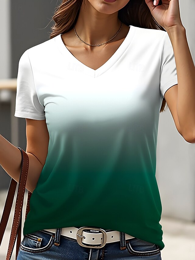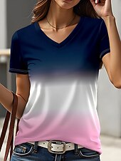 More information about Women's T Shirt Graphic Gradient Vintage Stylish Classic Short Sleeve V Neck Regular Tops Daily Going out Weekend Print Navy Blue Dark Green Summer Spring Fall