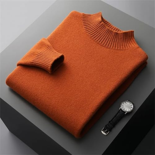 Men's Half Turtleneck Round Neck Thickened 100% Cashmere Sweater Winter Solid Color Pullover Wool Loose Knit Long Sleeve 5