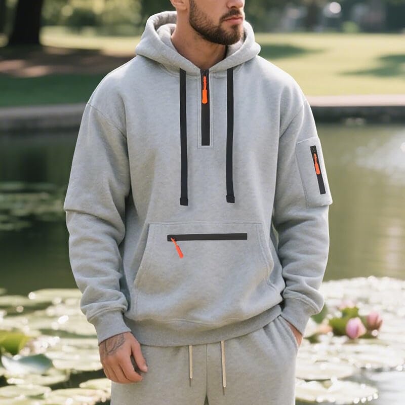 Mens Hoodies Pullover Quarter Zipper Hooded Neck Long Sleeve Casual Pullover Tactical Sweatshirts with Zip Pockets 1