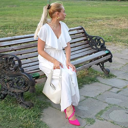 • Comfy Evening Stilettos: Soft memory insole pad and anti-slip rubber sole provide you a comfortable wearing experience. The qualified elastic belt could allow a wide width of foot if wearing too long
