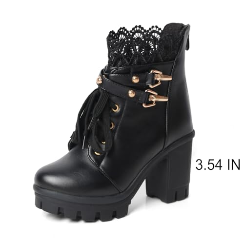 • Perfect Fit & Easy Wearability:Our lace-up block high heel boots for women come in accurate sizing, designed for true-to-size fit in most cases. Whether you're dressing up for a festival, cosplay,costume,y2k,birthday party,retro,halloween,Christmas,lolita or kawaii style,steam punk boots,witchy boots,or just a casual day out, our platform combat boots can match any ensemble,these high heel ankle boots will keep you comfortable and stylish.