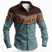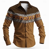More information about Men's Bull Ethnic Indian Culture Shirt Button Up Shirt Long Sleeve Vintage Retro Tribal Outdoor Camping & Hiking Hunting Spring Fall Turndown 3D Print Collared Shirts Blue Brown Khaki