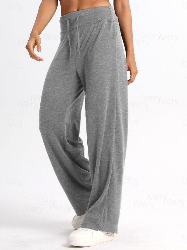HOT ! Women's Sweatpants Wide Leg Chinos Fashion Basic Casual Full Length High Waist Plain Pocket Elastic Waistband Comfy Soft Comfortable Stretchy Outdoor Yoga Street Black Apricot Gray Summer Spring Fall