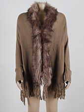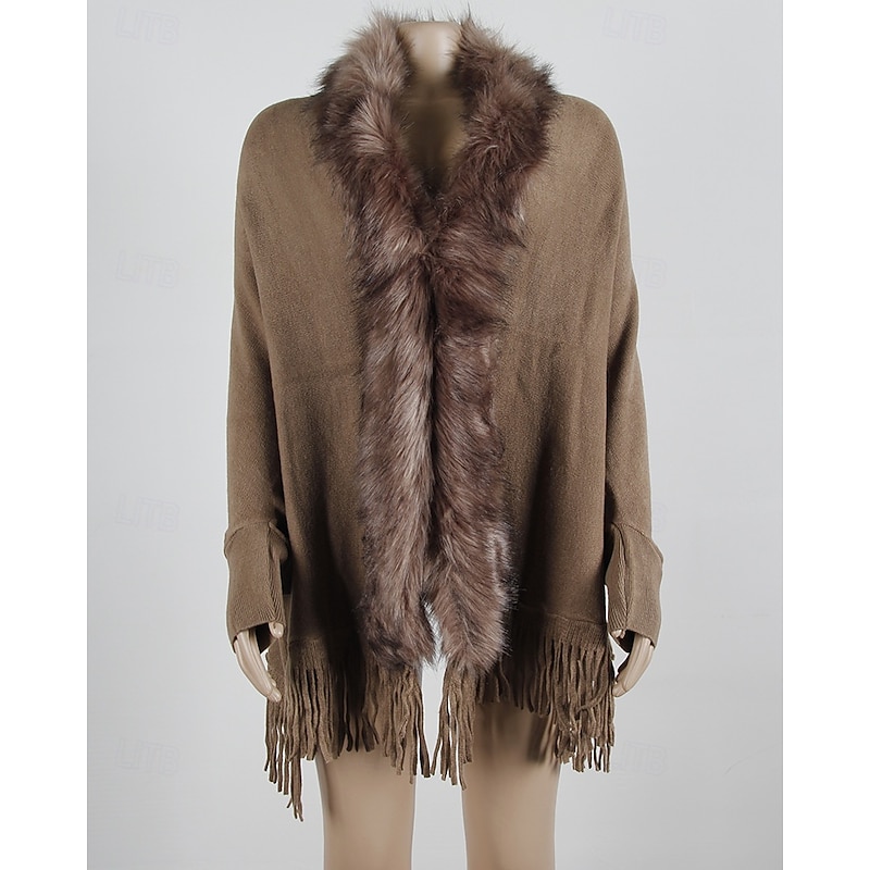 More information about Women's Cardigan Open Front Knit Tassel Fur Fall Winter Formal Outdoor Elegant Fashion Long Sleeve Solid Color Khaki Beige