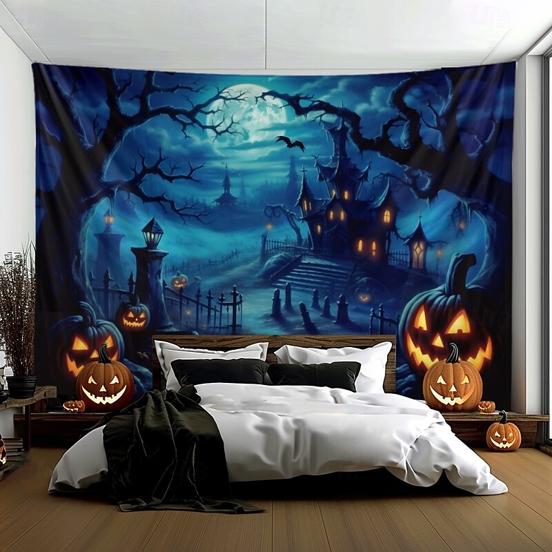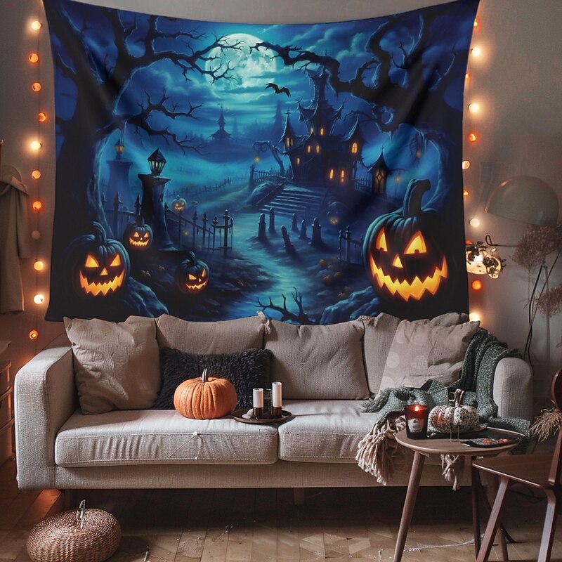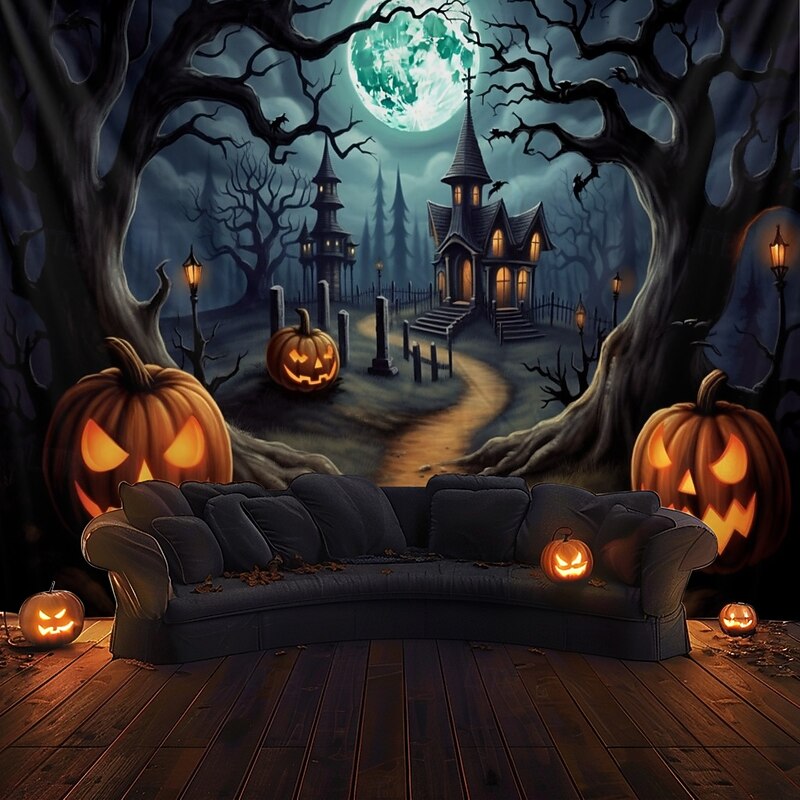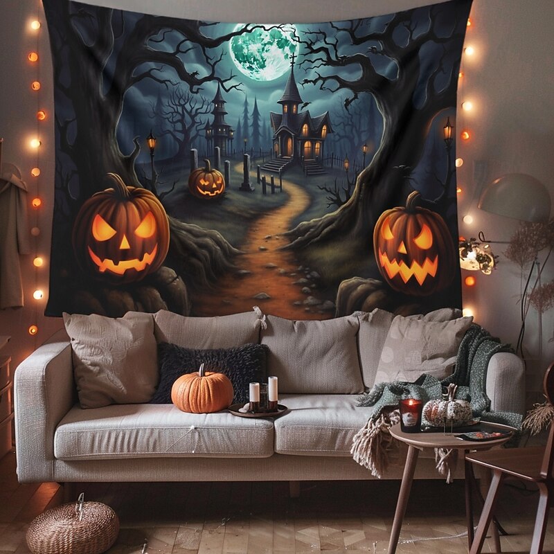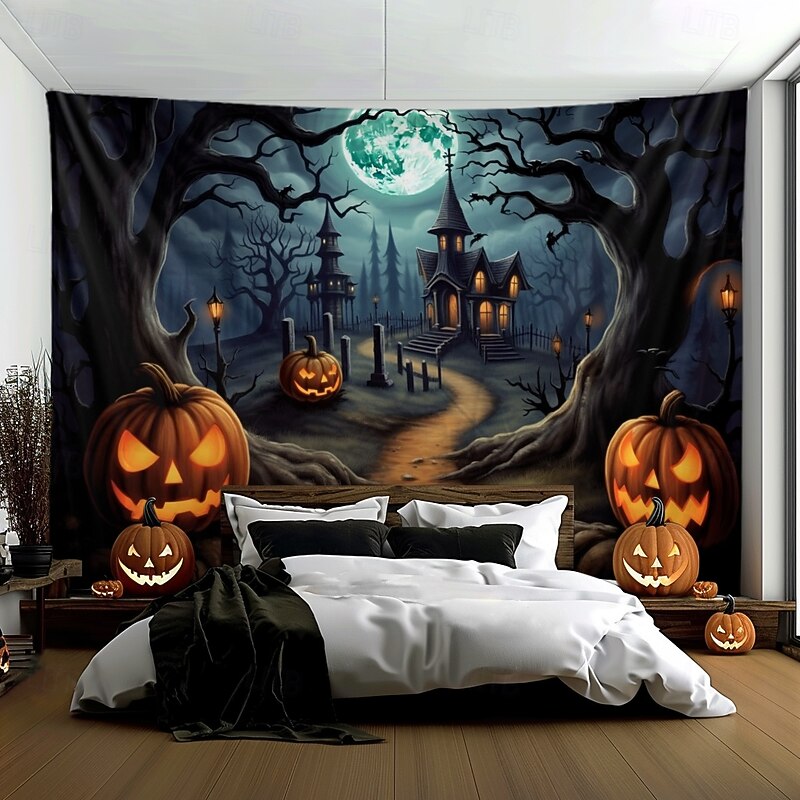 HOT ! Halloween Decorations Pumpkin Forest Hanging Tapestry Wall Art Large Tapestry Mural Decor Photograph Backdrop Blanket Curtain Home Bedroom Living Room Haunted House