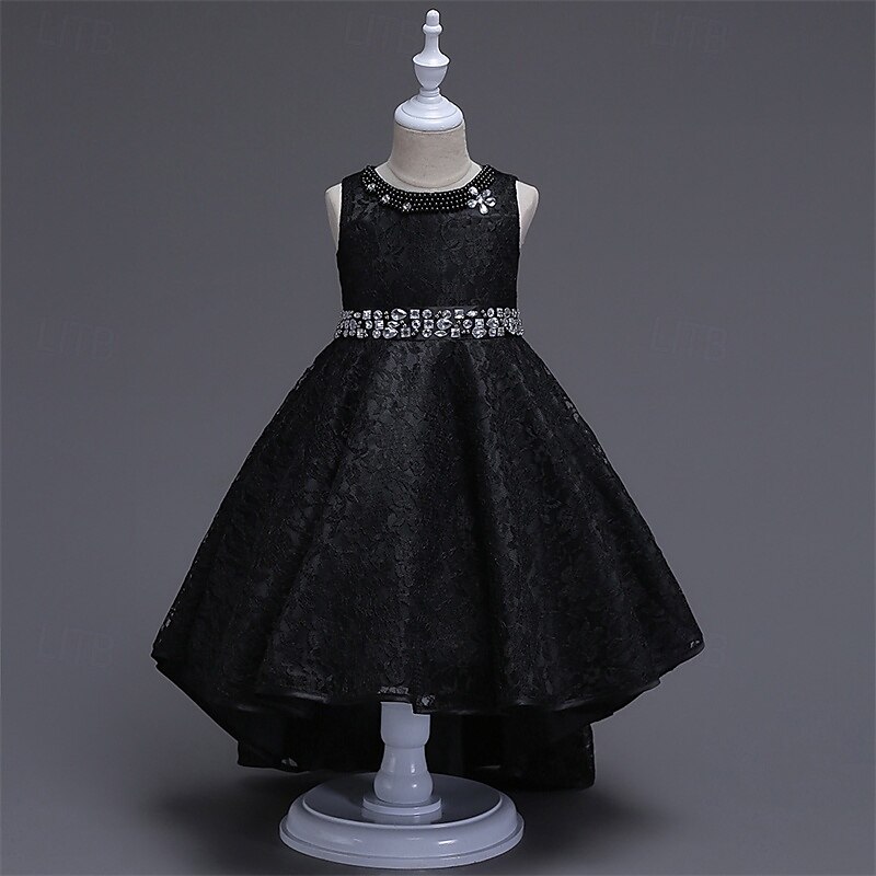 More information about Kids Girls' Party Dress Solid Color Sleeveless Performance Birthday Beautiful Sweet Polyester Asymmetrical Party Dress Swing Dress A Line Dress Summer 4 years+ Black Champagne Wine