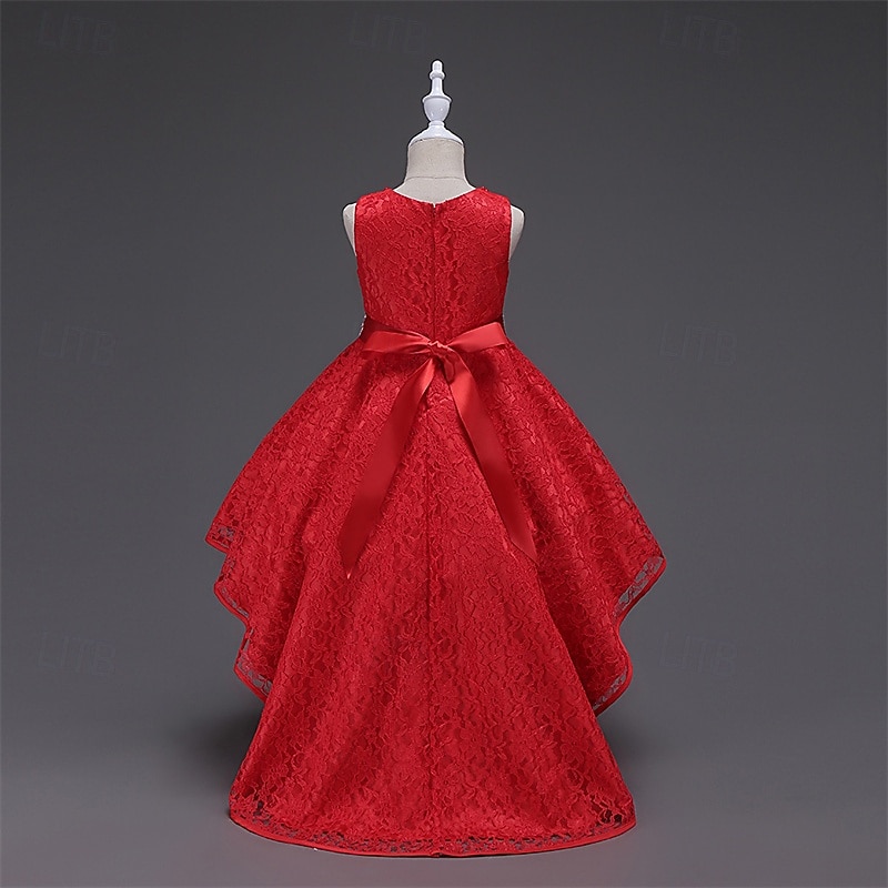 Kids Girls' Party Dress Solid Color Sleeveless Performance Birthday Beautiful Sweet Polyester Asymmetrical Party Dress Swing Dress A Line Dress Summer 4 years+ Black Champagne Wine 18