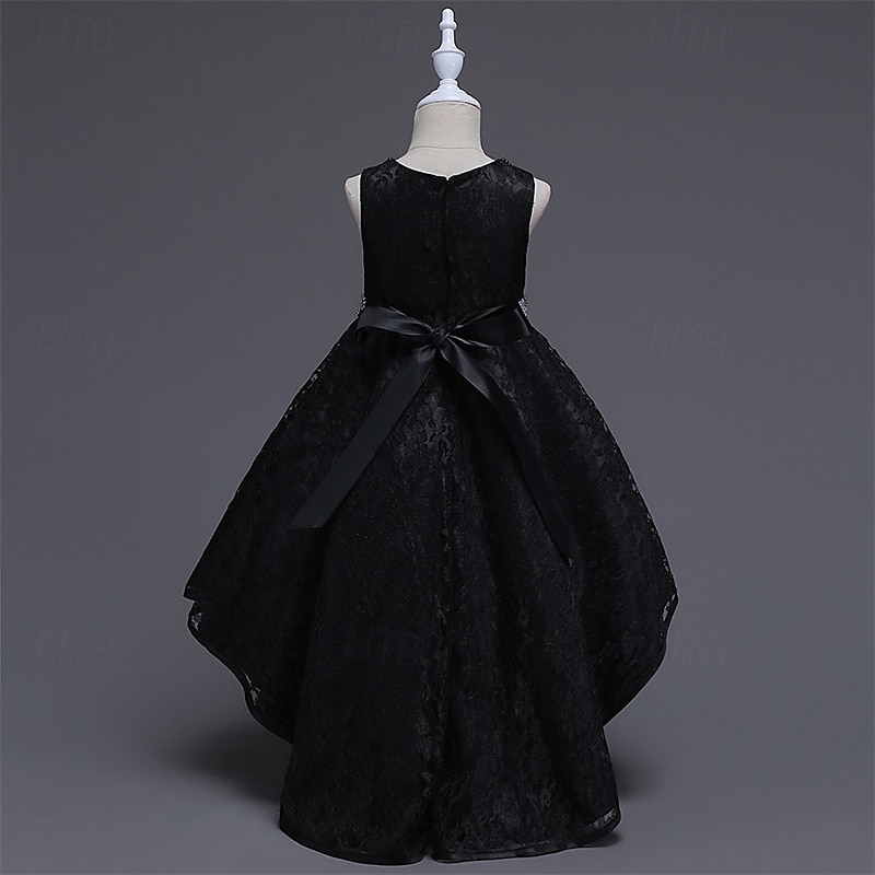 Kids Girls' Party Dress Solid Color Sleeveless Performance Birthday Beautiful Sweet Polyester Asymmetrical Party Dress Swing Dress A Line Dress Summer 4 years+ Black Champagne Wine 1