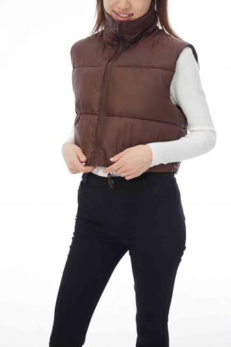 Women's Cropped Puffer Vest Winter Padded Vest Lightweight Zip Crop Puffy Gilet 5