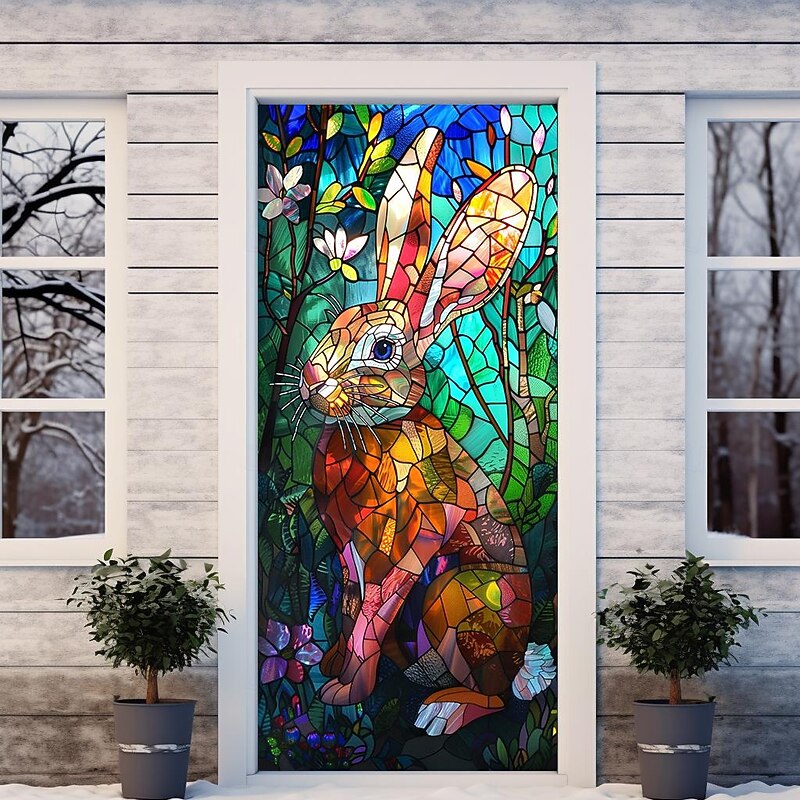 Stained Glass Parrot Door Covers Mural Decor Door Tapestry Door Curtain Decoration Backdrop Door Banner Removable for Front Door Indoor Outdoor Home Room Decoration Farmhouse Decor Supplies 9