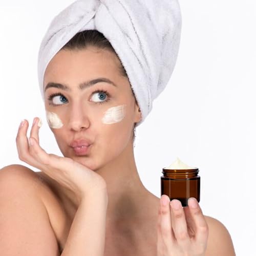 24 Pack 1 oz Round Amber Glass Cosmetic Jars with Lids And Inner Liners, Travel Glass Jars, Refillable Cosmetic Containers for Lotion, Lip Scrub, Makeup, Eyeshadow, Slime, Paint 5