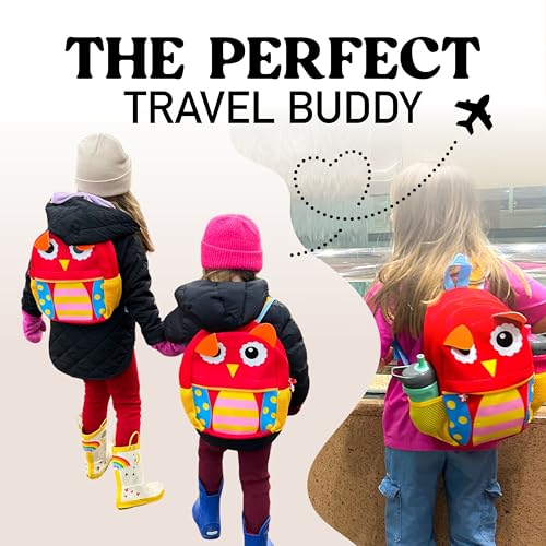 • IDEAL SIZE FOR YOUNG LEARNERS – This 12-inch owl backpack is just right for toddlers and preschoolers ages 2–5. It features a snack-saving insulated front zipper pocket, spacious interior for toys or books, dual mesh bottle holders, and a water-resistant neoprene body for long-lasting use.