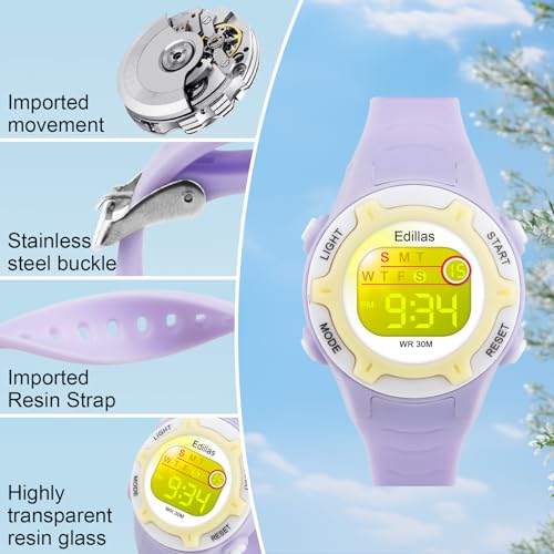 Edillas Kids Watches Digital Girls Boys, 7 Colors Light Waterproof Sport Outdoor Multifunctional Wristwatch for Child with Stopwatch/Alarm for Ages 4-15 3