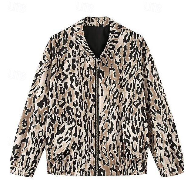 Women's Casual Jacket Comfortable Zipper Print Vintage Fashion Leopard School Outdoor Vacation Home Short Baseball Collar Regular Fit Long Sleeve Outerwear Leopard Print Spring Fall 1