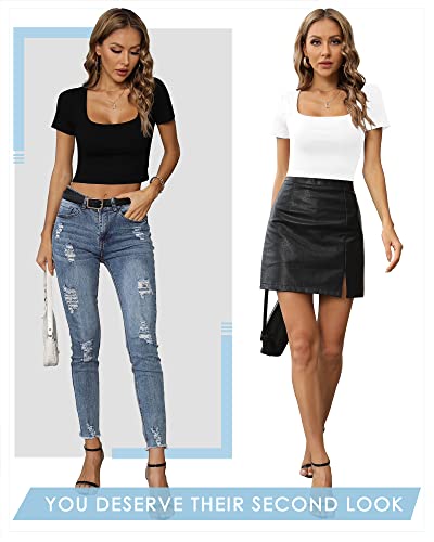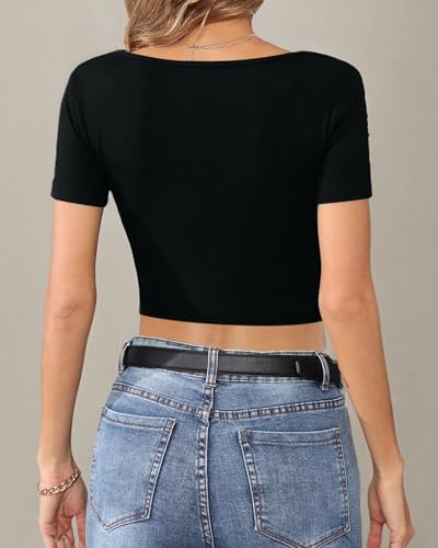 • Unique Design: Short sleeve, square neck, basic type, crop top, elegant and sexy with slim fit. The cute cropped tshirts with short sleeves, simple design makes you look more stylish. This square neck crop top is an indispensable fashion item in a womans wardrobe