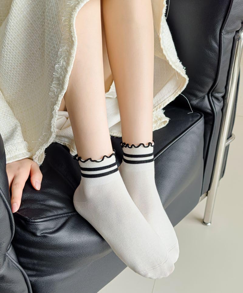 MarJunSep Ruffle Frilly Ankle Socks for Women Teen Girls Cute Crew Socks Striped Dots Heart Ribbed Thin Cotton Socks 4