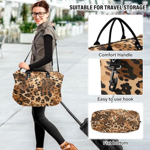 More information about Brown Leopard Print Color Travel Duffle Bag Gym Bag Weekender Bags with Toiletry Bag Travel Trip Tote Bag