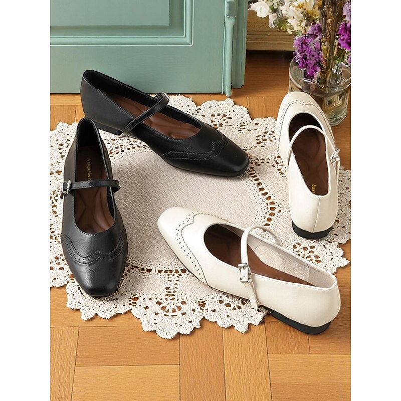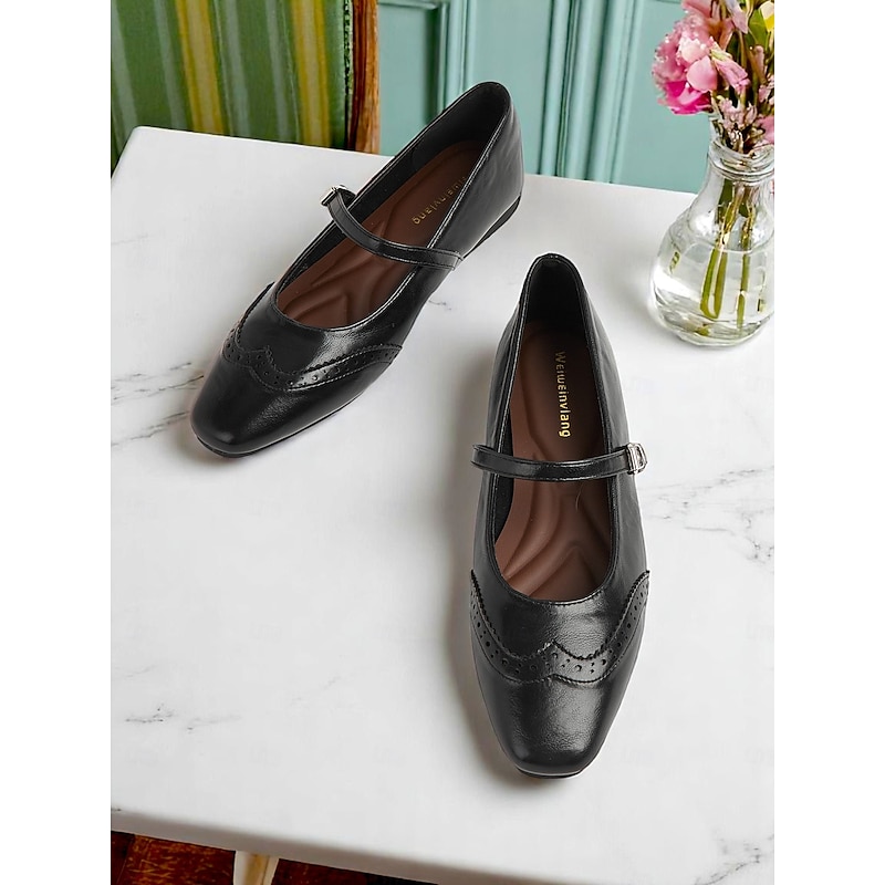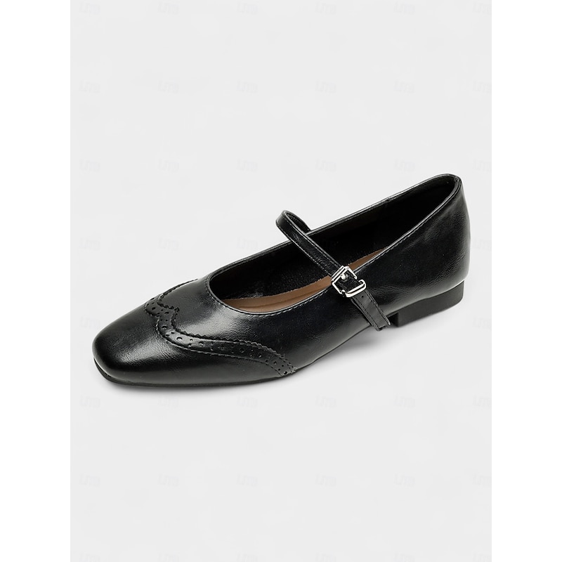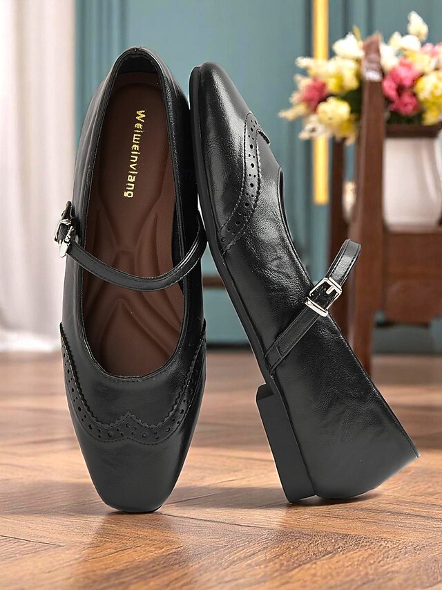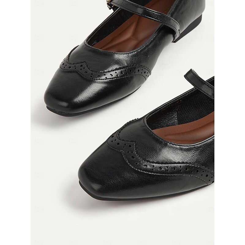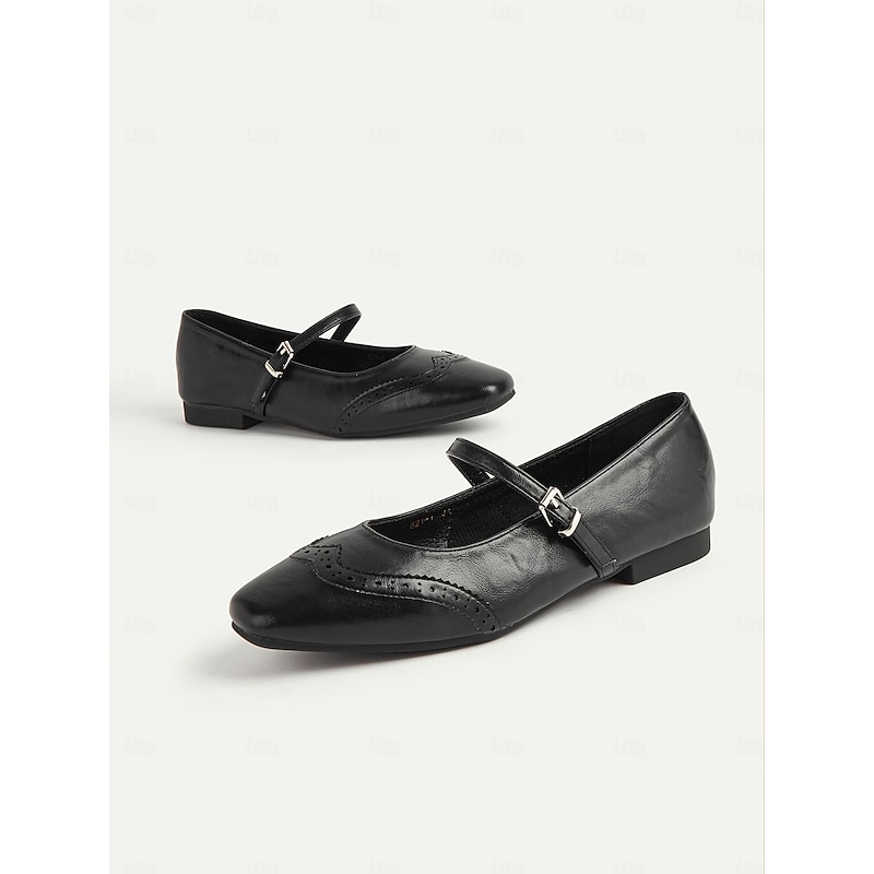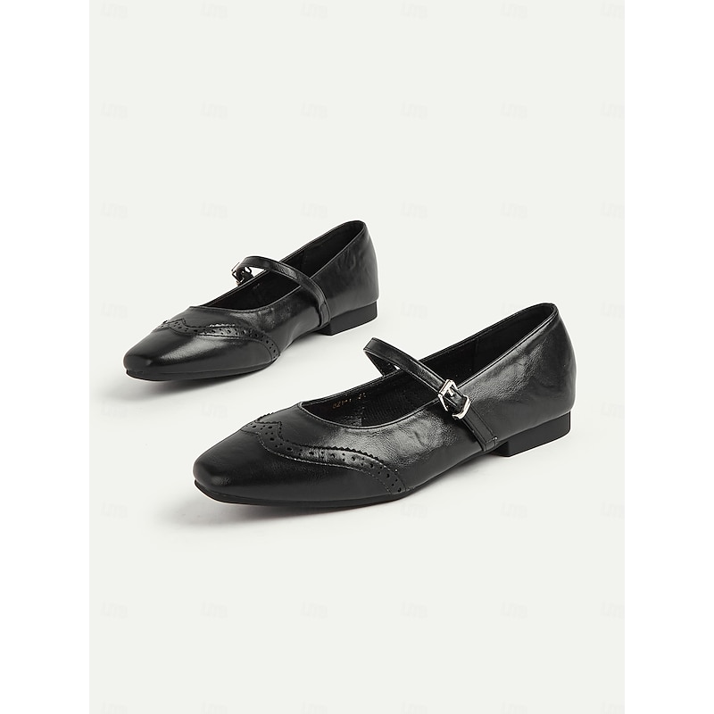 HOT ! Women's Black Faux Leather Mary Jane Flats – 1950s Vintage Schoolgirl Style with Brogue Detail for Daily Wear & Lolita Outfits