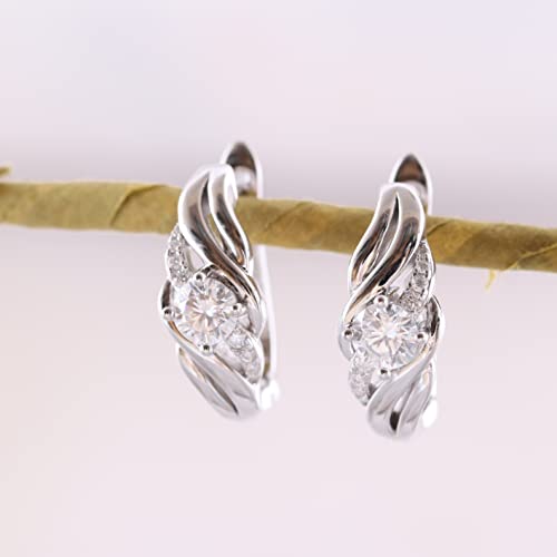 More information about DovEggs Moissanite Earrings,Solid 10K White Gold Post 1ct Center 5mm F-G-H color Moissanite Hoop Earrings 14K Gold QUALITY Sterling Silver Earrings with Accents for Women