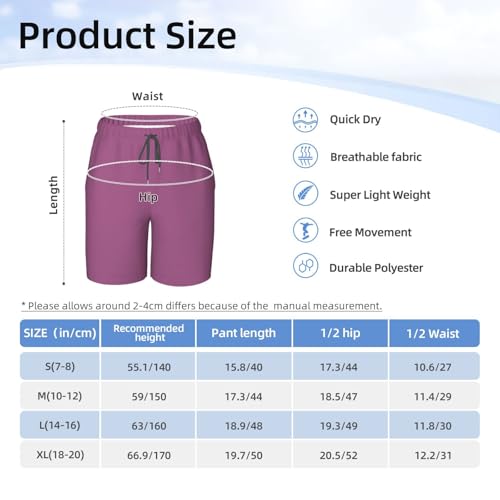 Solid Color Grape red Youth Beach Pants, gentle and Breathable, with Drawstring Waist, Suitable for Sports and Leisure.