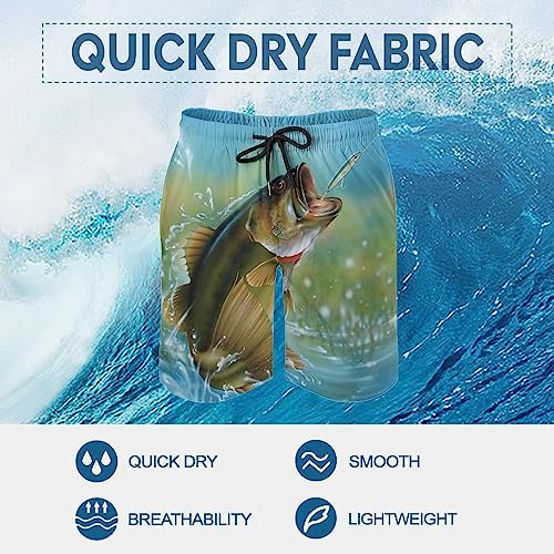 Bass Fishing Mens Swim Trunks Quick Dry Beach Shorts Casual Sports Board Shorts Swimwear with Pocket 6