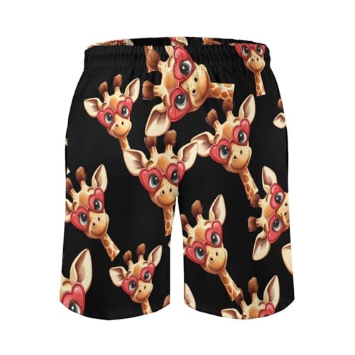 Funny Giraffe Men's Swim Trunks swift Dry Board Shorts Hawaiian Beach Shorts With Pocket