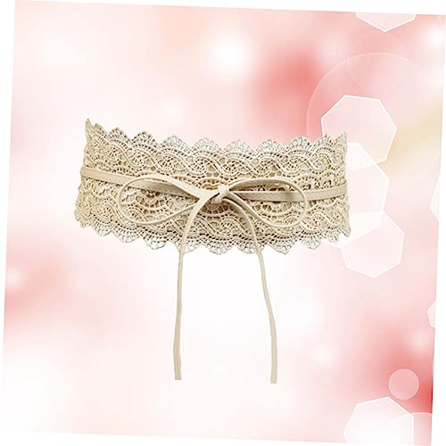 Beaupretty Cream Lace Wide Band Corset Waist Belt for Women Adjustable Bowknot Tie Dress Accessory Slimming Faux PU Leather Waist Cincher for Prom Party and Casual Wear 3