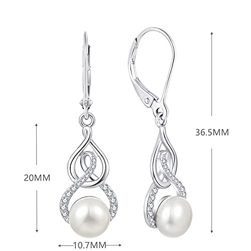 JO WISDOM Women Pearl Earrings 925 Sterling Silver Celtic Infinity Dangle & Drop Earrings with 8mm Freshwater Pearl Jewelry 1