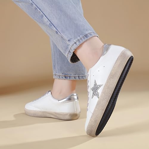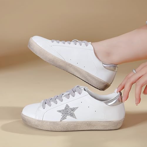 Sneakers for Women - Fashion Bling Star Sequins Sneaker - Cushioned Low Top Platform, Rubber Sole Leather Upper Lace Up Walking Shoes - Casual Comfortable Running Sports Shoes 4